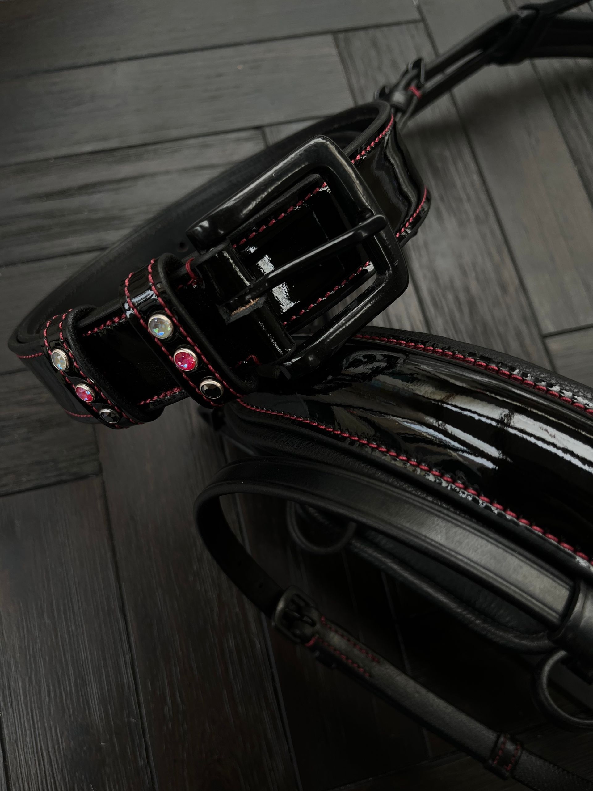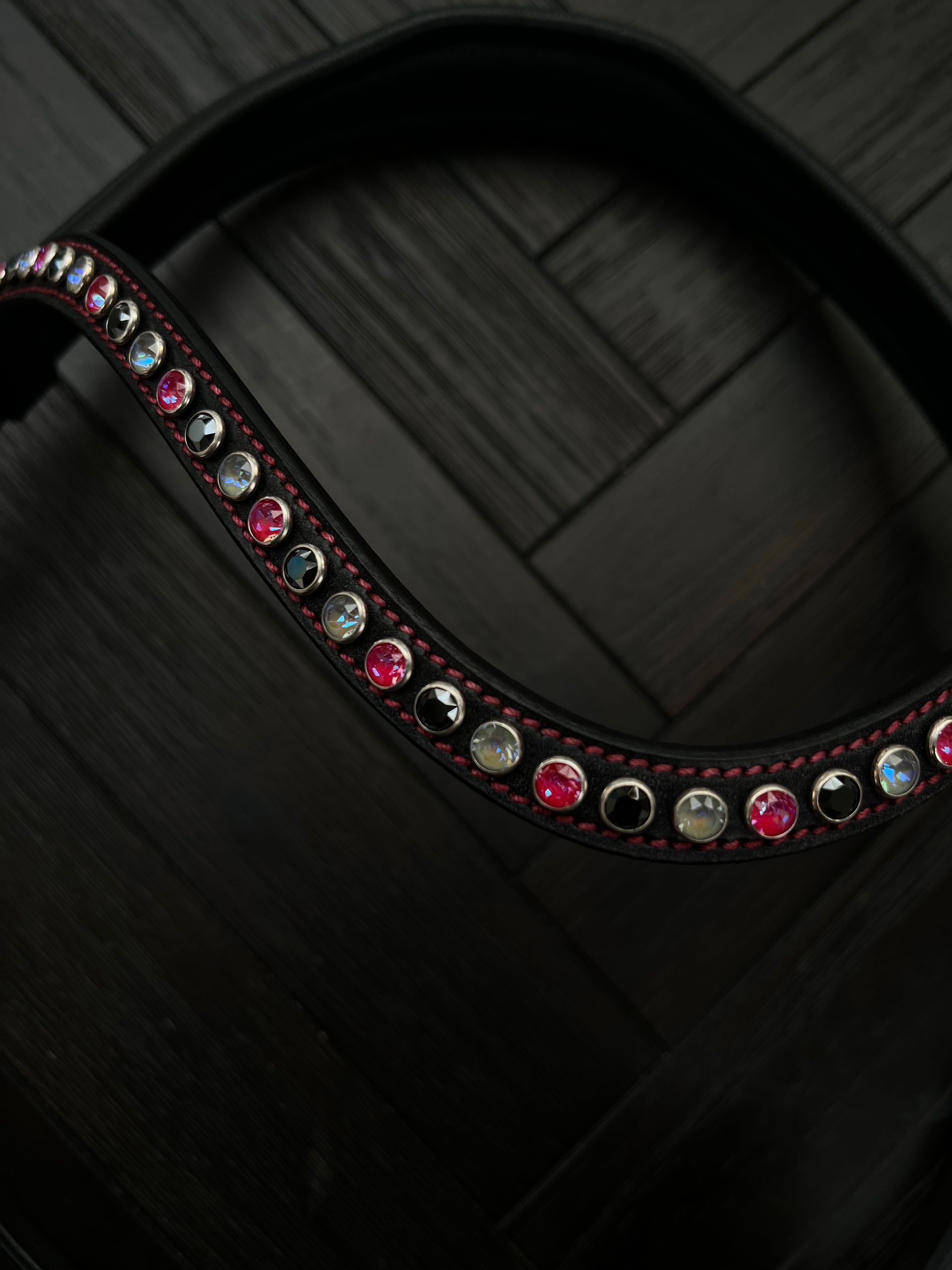Zwart hoofdstel met bordeaux stiksel