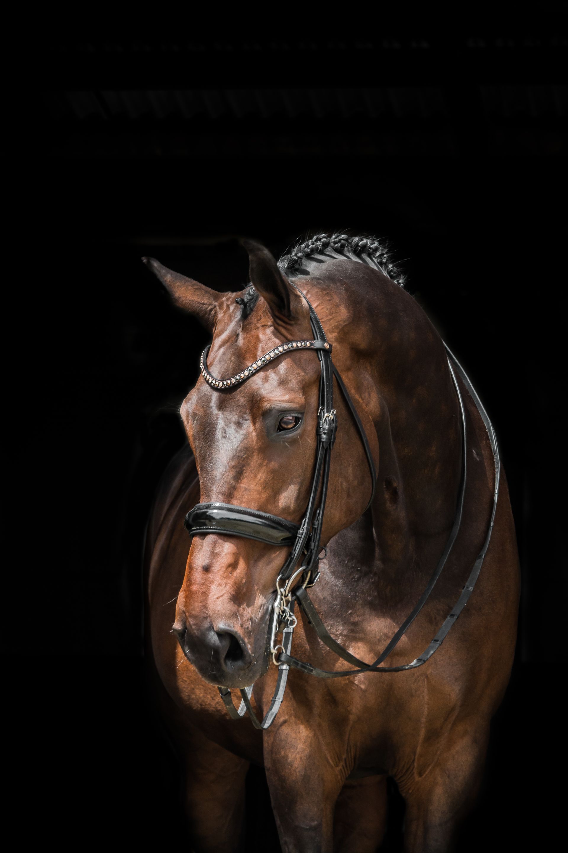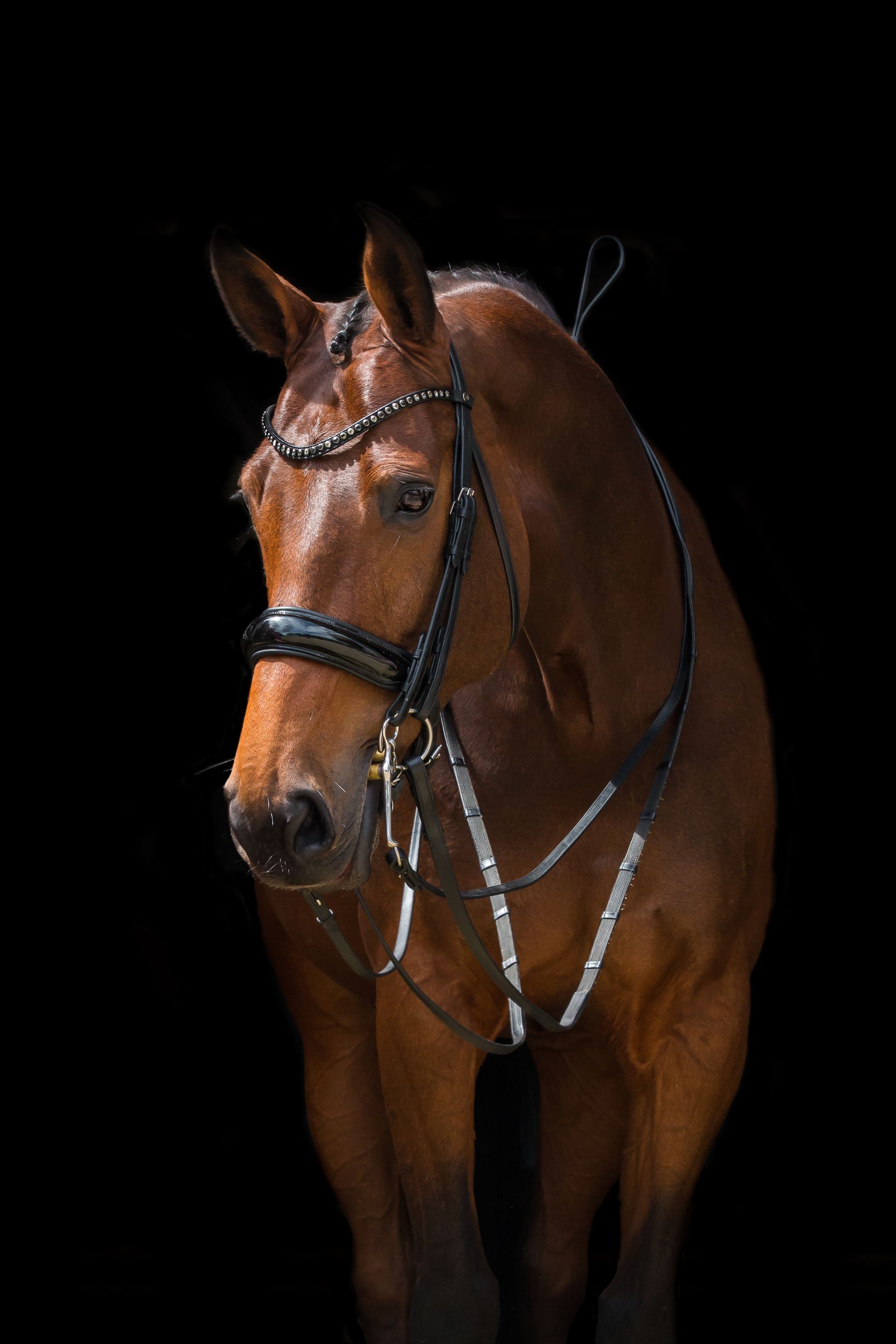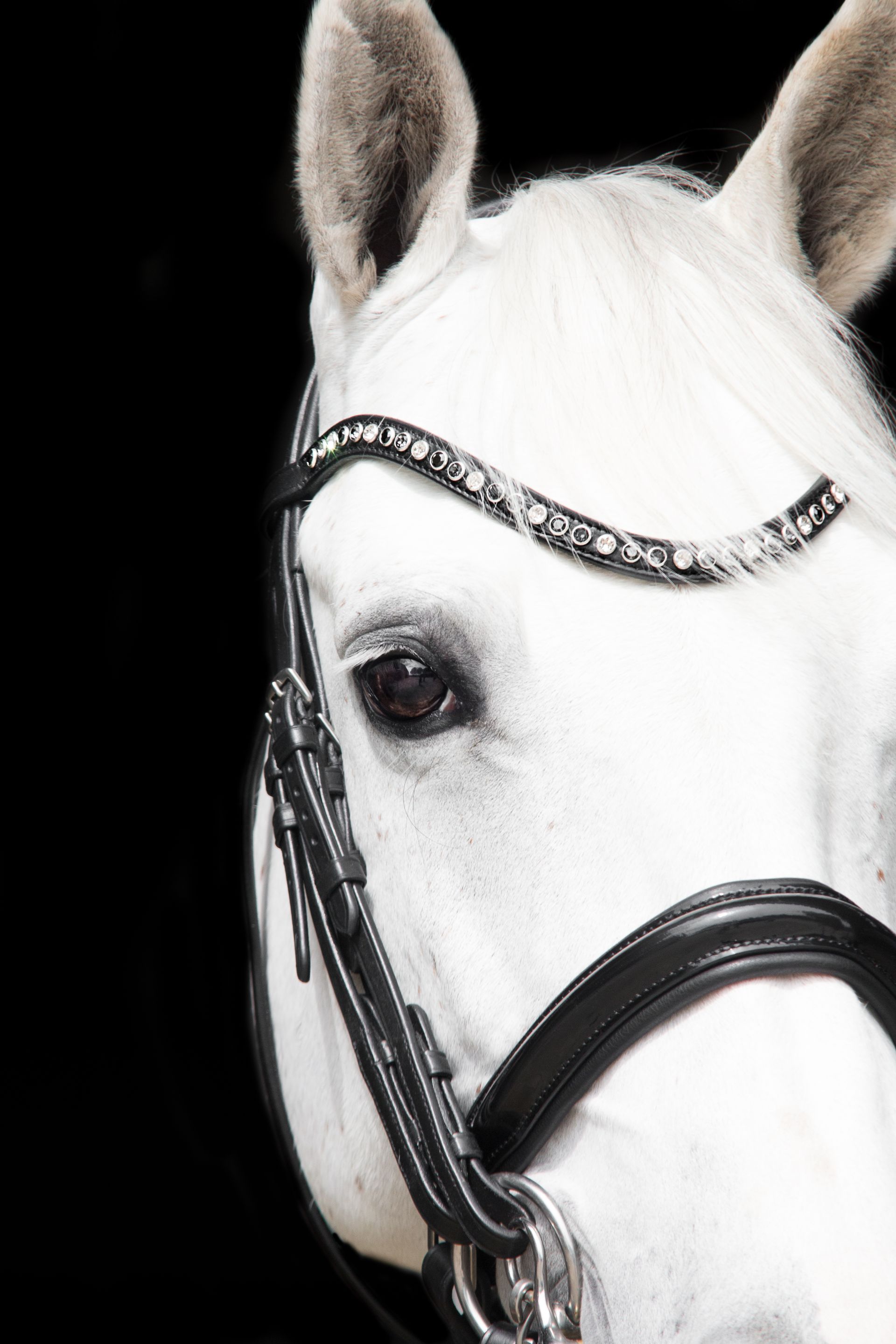 Zwart hoofdstel met zilveren gespen